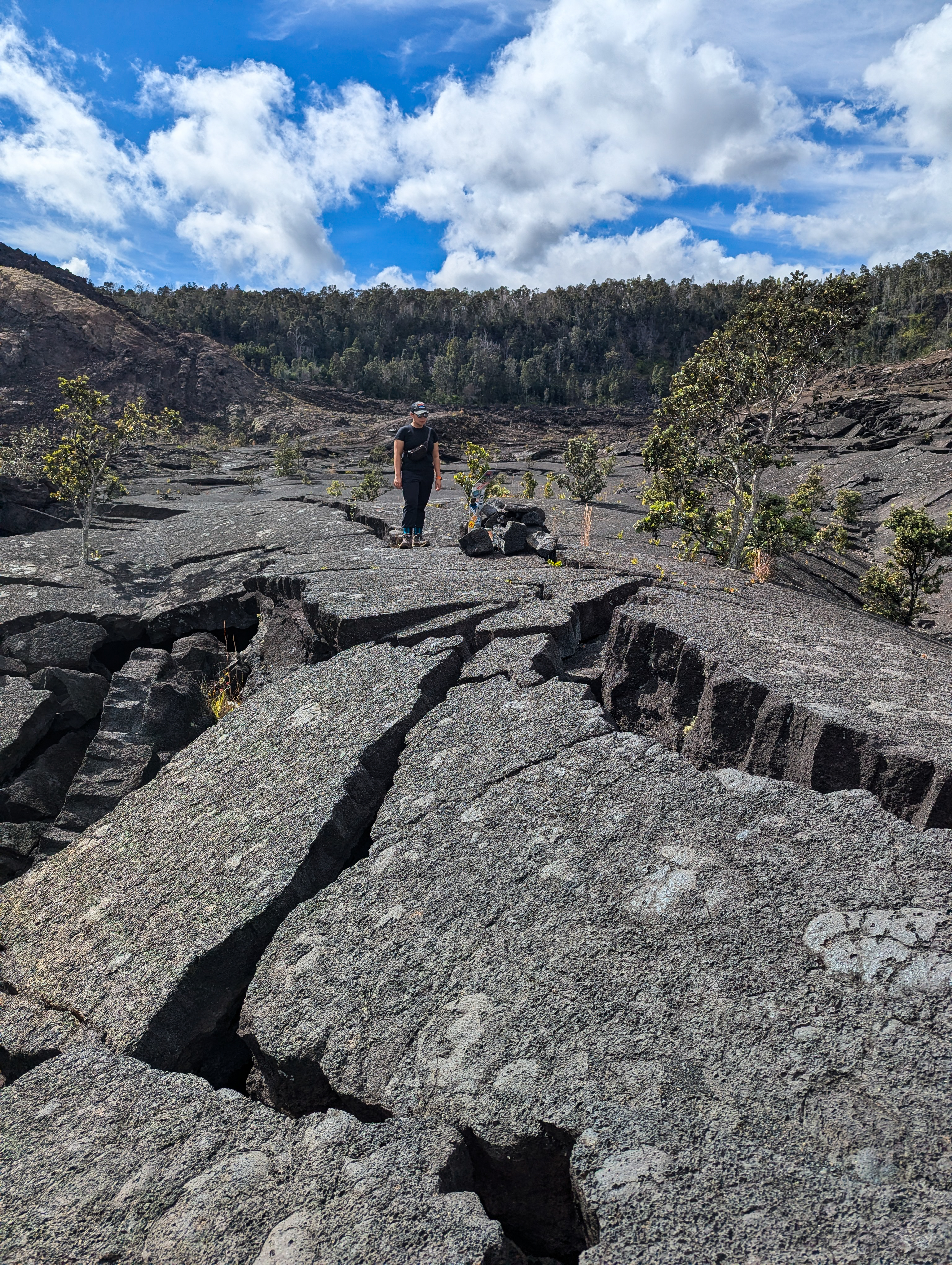 Kilauea had erupted just two months before we made this trip to Big Island, and about a month after I had visited with Mom, Dad, and Bub. While I wish I could have witnessed lava spewing live from Kilauea, it was also amazing to see Kilauea again in its aftermath. the crater floor had visibly changed from the new lava that pushed forth from Earth’s core in September. This majestic mountain had transformed itself, ever so slightly in its grand scheme through time, once again. its new surface still smoldered with the intensity of the effort. I can’t name another terrestrial life form that births itself, but I’m sure that it too would have to expend an enormous store of its energy to do so.
