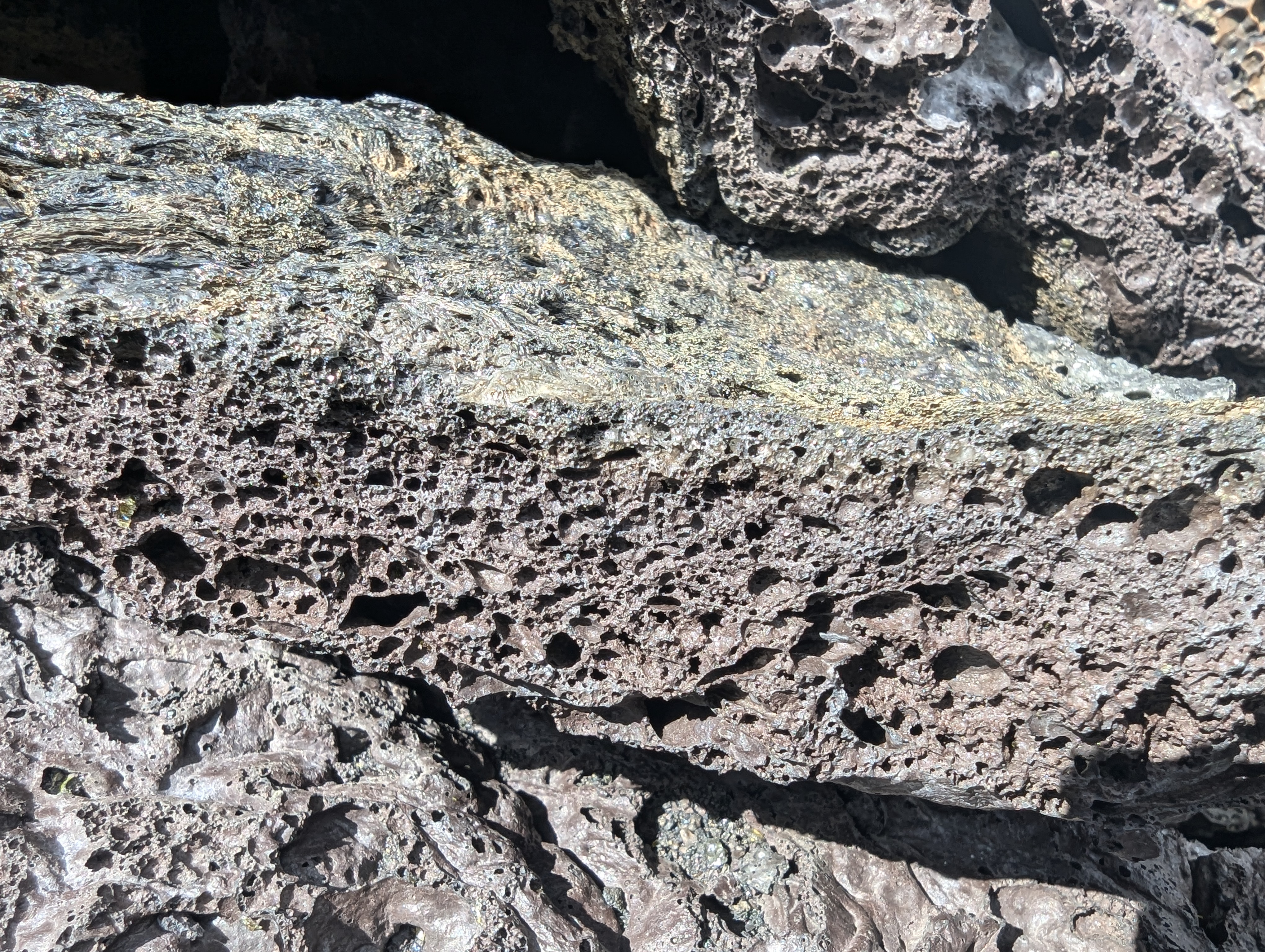 The rocks themselves held the most fascination. Much of the crust was rock so black that it seemed not to reflect any light at all. But then you would look and see bands of rainbow colors embedded in a cross-section or piles that glinted in metallic silver, bronze, and gold. There is no way that crater isn’t alive and teeming with life of some kind. We humans may not even recognize what’s there as life, but it felt as alive as if we were atop the rising and falling chest of an enormous breathing mammal.