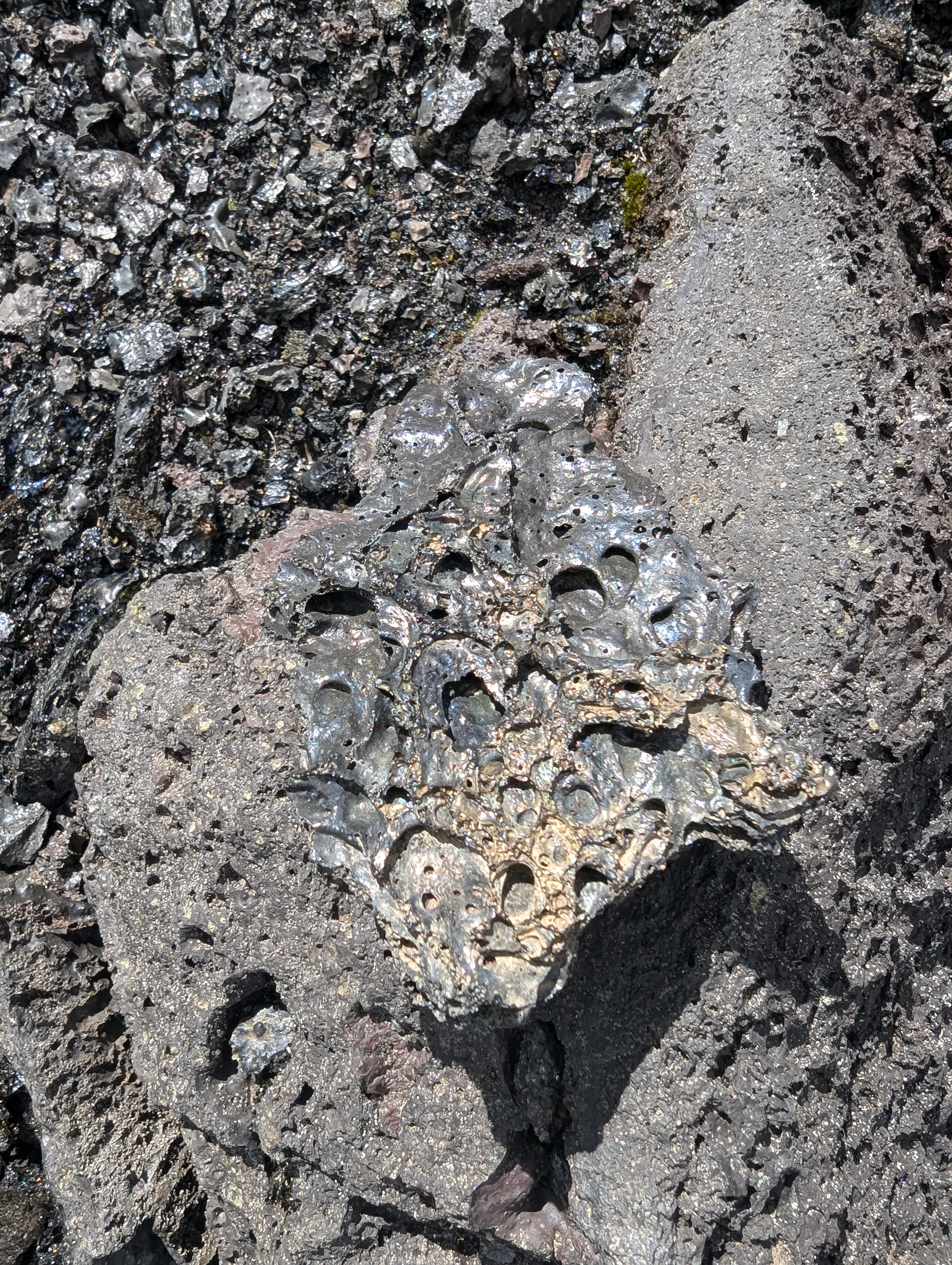 Plant life seemed to thrive, and then die, and rise again in the crust’s cracks. There was no evidence of animal life, but the many crevasses and crumbly piles that resemble the amalgam from rutted and sinkhole-laden city streets created plenty of potential shelter, burrows for small animals to keep in the cooler nights.